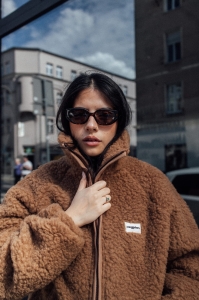 Damska kurtka wełniana bomber - chocolate
